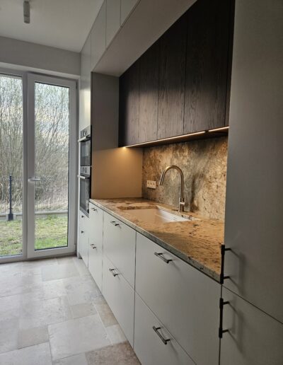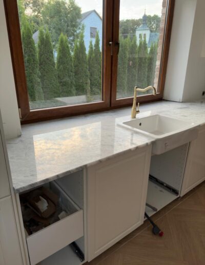 Wykonujemy blaty z naturalnych kamieni, takich jak granit, marmur i onyks, a także z wysokiej jakości kwarców. Każdy projekt realizowany jest na wymiar, z uwzględnieniem układu kuchni oraz indywidualnych oczekiwań inwestora. Kamienne blaty charakteryzują się odpornością na uszkodzenia, stabilnością oraz ponadczasowym wyglądem.